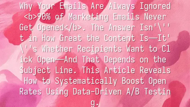 Why Your Emails Are Always Ignored? 90% of Marketing Emails Never Get Opened. The Answer Isn't in How Great the Content Is—It's Whether Recipients Want to Click Open—And That Depends on the Subject Line. This Article Reveals How to Systematically Boost Op
