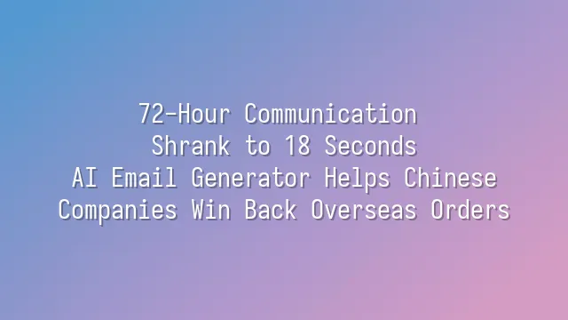 72-Hour Communication Shrank to 18 Seconds: AI Email Generator Helps Chinese Companies Win Back Overseas Orders