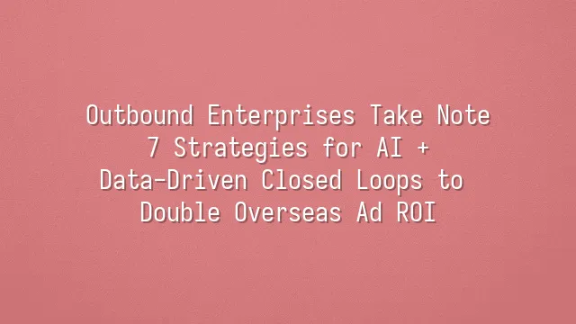 Outbound Enterprises Take Note: 7 Strategies for AI + Data-Driven Closed Loops to Double Overseas Ad ROI
