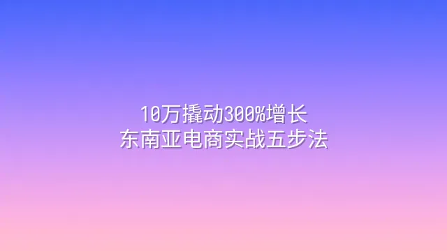 10万撬动300%增长:东南亚电商实战五步法
