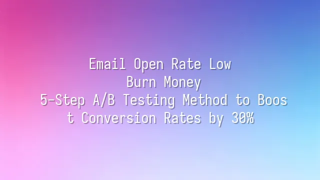Email Open Rate Low? Burn Money? 5-Step A/B Testing Method to Boost Conversion Rates by 30%