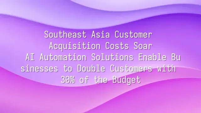Southeast Asia Customer Acquisition Costs Soar? AI Automation Solutions Enable Businesses to Double Customers with 30% of the Budget