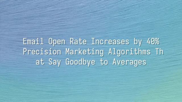 Email Open Rate Increases by 40%: Precision Marketing Algorithms That Say Goodbye to Averages