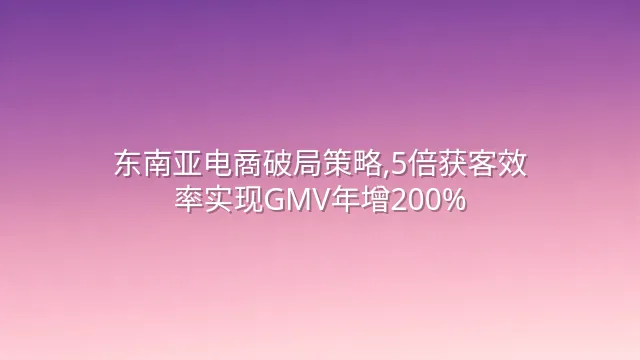 东南亚电商破局策略,5倍获客效率实现GMV年增200%