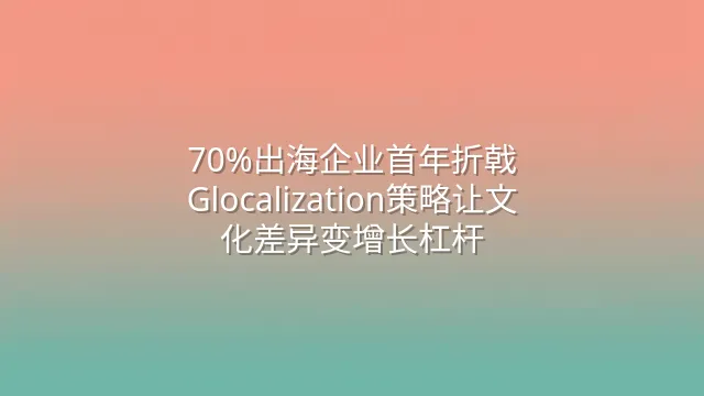 70%出海企业首年折戟?Glocalization策略让文化差异变增长杠杆