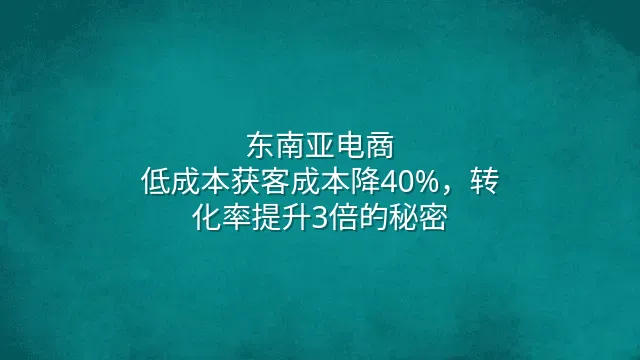 东南亚电商:低成本获客成本降40%,转化率提升3倍的秘密