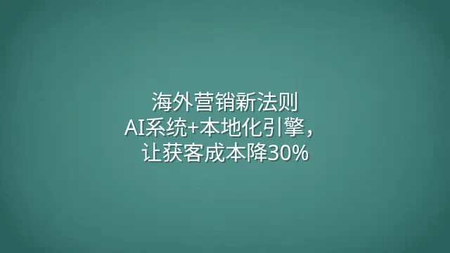海外营销新法则:AI系统+本地化引擎,让获客成本降30%