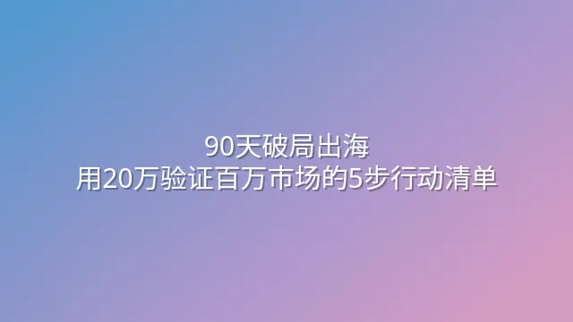 只需完成5项动作,即可在90天内部署可验证的海外市场测试——这对资源有限的中小企业而言,不是理想,而是现实。错过这个窗口,你将被本地化更彻底、反应更快的竞争者永久挤压生存空间;而抓住它,意味着以不到20万元的成本,锁定下一个百万级营收市场的入场券。