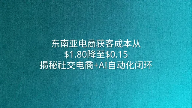 东南亚电商获客成本从$1.80降至$0.15:揭秘社交电商+AI自动化闭环
