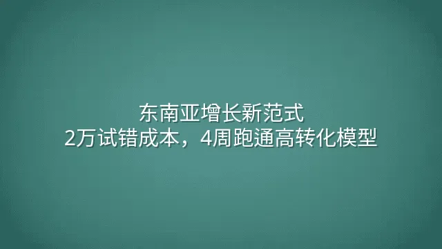 东南亚增长新范式:2万试错成本,4周跑通高转化模型