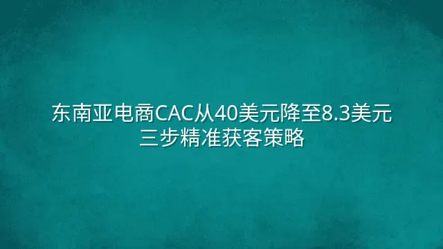 东南亚电商CAC从40美元降至8.3美元:三步精准获客策略