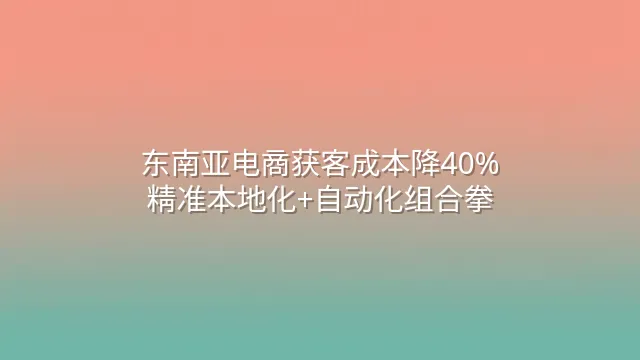 东南亚电商获客成本降40%:精准本地化+自动化组合拳