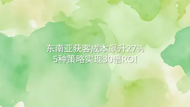 东南亚获客成本飙升27%?5种策略实现30倍ROI