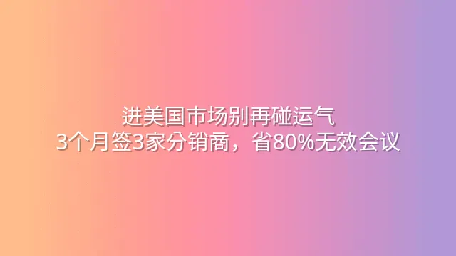 进美国市场别再碰运气:3个月签3家分销商,省80%无效会议