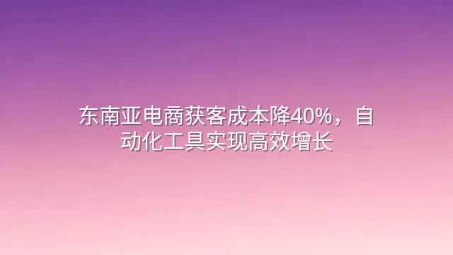 东南亚电商获客成本降40%,自动化工具实现高效增长