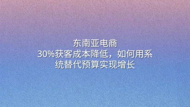 东南亚电商:30%获客成本降低,如何用系统替代预算实现增长